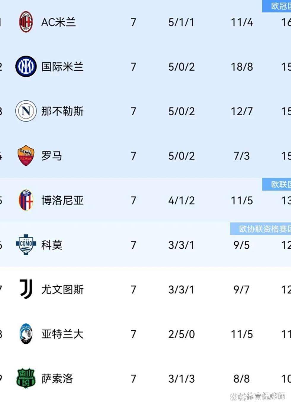 积分榜更有意思。米兰双雄轮流登顶,国米赢球后又被米兰反超,这种“你追我赶”让榜首之争提前白热化。另一头,亚特兰大2胜5平保持不败,和拜仁并列五大联赛唯一不败,这支“真蓝黑”的韧性,可能成为意甲下半程的最大变数。